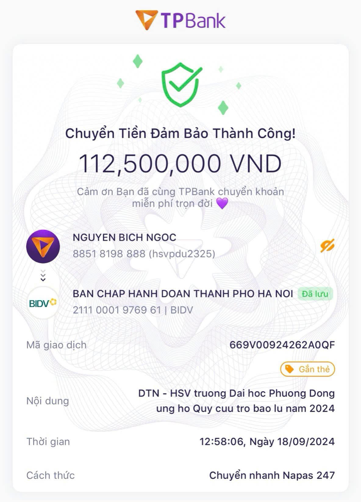 Cuối cùng, xin gửi lời cảm ơn chân thành nhất đến các bạn đoàn viên, sinh viên trong trường đã chung tay góp sức ủng hộ đồng bão gặp lũ lụt.