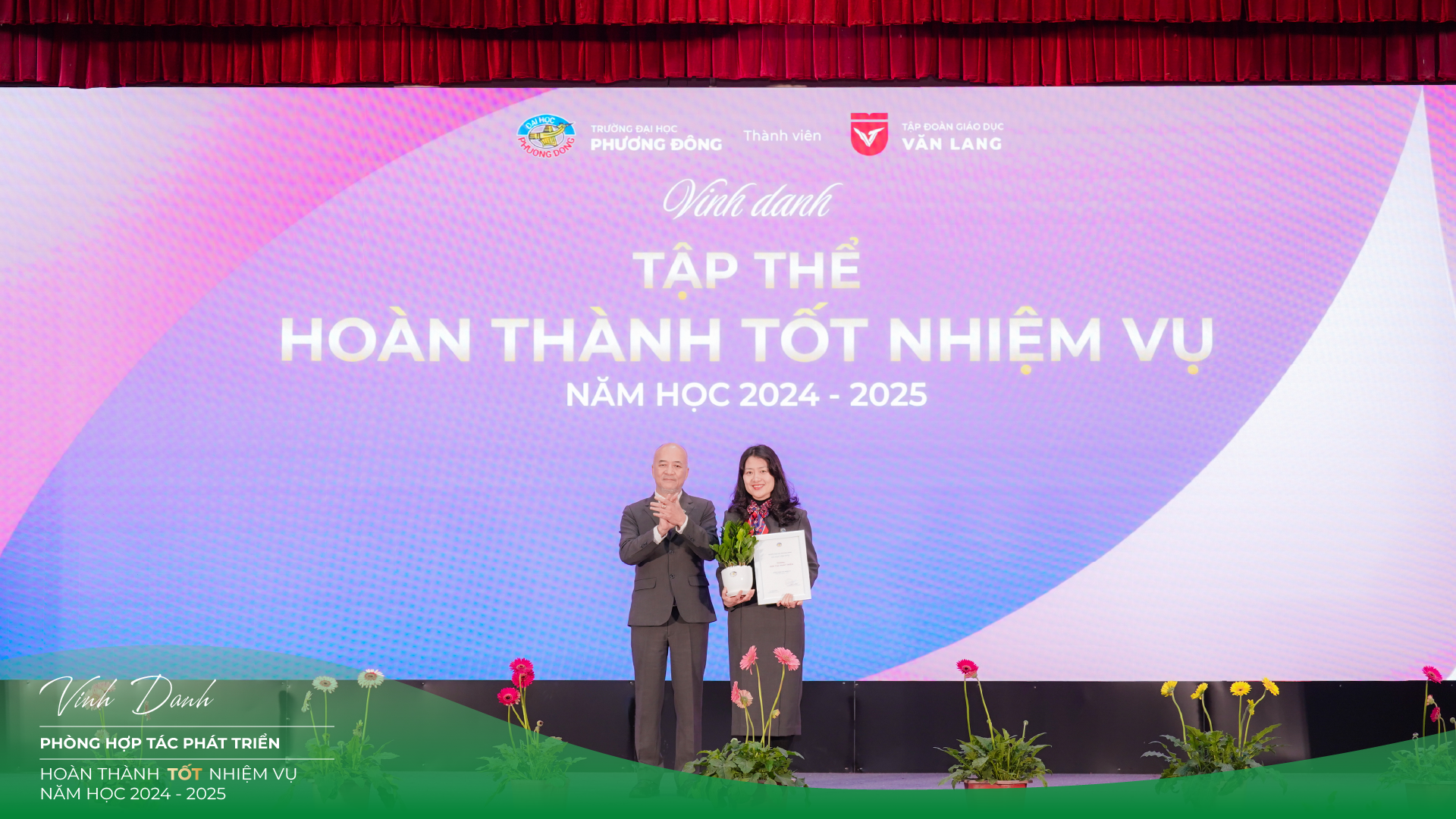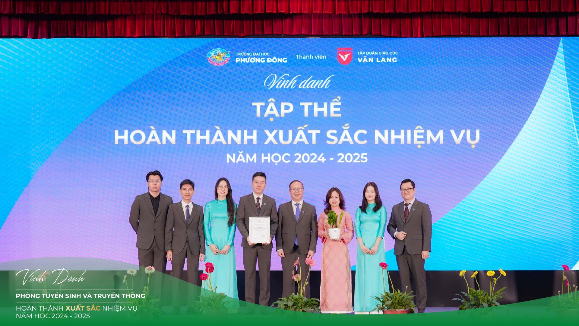 Một trong những điểm nhấn ý nghĩa nhất của Town Hall 2025 chính là Lễ vinh danh – khen thưởng các tập thể và cá nhân hoàn thành tốt, xuất sắc và vượt trội nhiệm vụ năm học 2024–2025. Đây không chỉ là sự ghi nhận xứng đáng cho những nỗ lực bền bỉ, mà còn là nguồn động lực lan tỏa tinh thần trách nhiệm, sáng tạo và cống hiến trong toàn Trường.